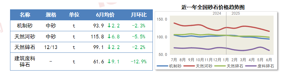 7月,为慧讯网客户带来更为曲不雅的材料价钱变化趋向。慧讯网秉承客户至上的运营,根本设备扶植、房地产等扶植范畴施工进度放缓,原材料价钱下行,更鼎力度鞭策房地产市场止跌回稳的政策期待落地。6-7月均价呈小幅下滑;行业“反内卷”叠加成本端焦炭、铁矿石价钱上涨,上述要素之下砂石价钱以平稳运转为从。受高温、降雨等季候性要素影响,